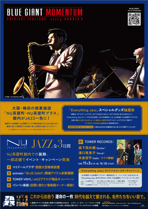 書籍「BLUE GIANT MOMENTUM 6」の発売を記念して、「NU茶屋町・NU茶屋町プラス」館内がJAZZ一色に!